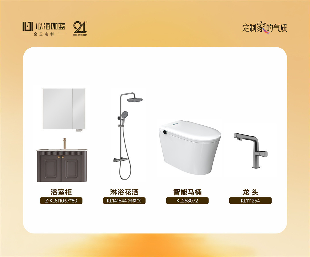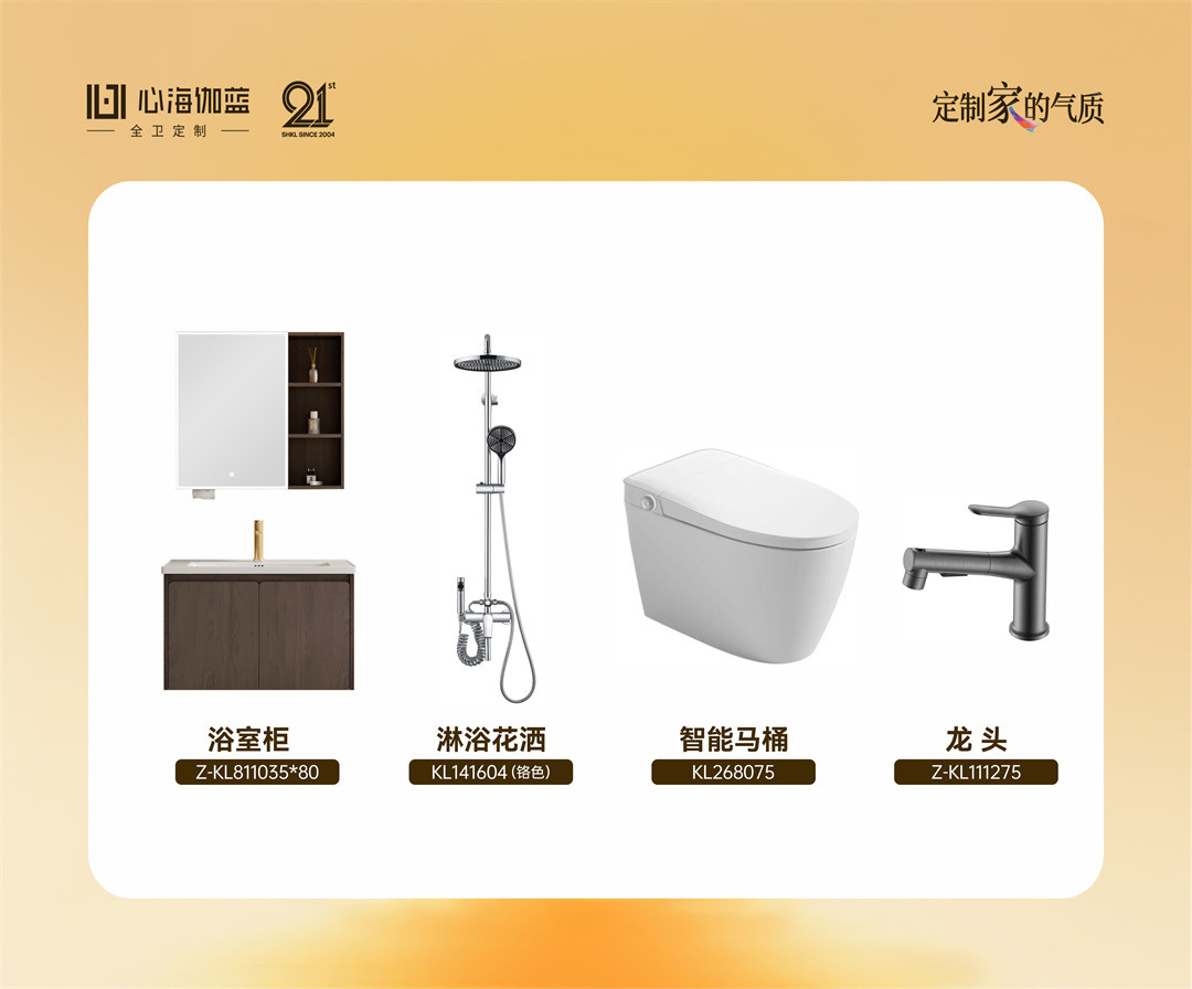 精选品质全卫套餐:浴室柜、花洒、智能马桶、龙头,一站式配齐,省心省力,还原卫生间应有的舒适与整洁。