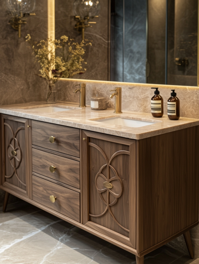 这些设计不仅追求视觉上的美感,还通过细节的处理让日常使用更加便利与舒适。每一件作品都在诠释着设计师对木艺的敬畏与热爱,同时也向我们展示了浴室空间中的无尽可能性。