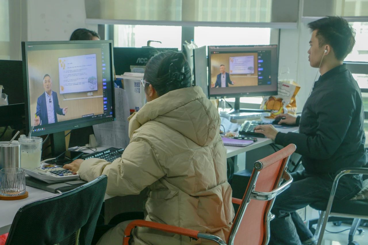 张爱民董事长于佛山·智慧新城总部开展“新年第一课”演讲,佛山总部、赢伽电商伽蓝人及全体经销商伽人于屏幕前学习,共同开启崭新的一年。