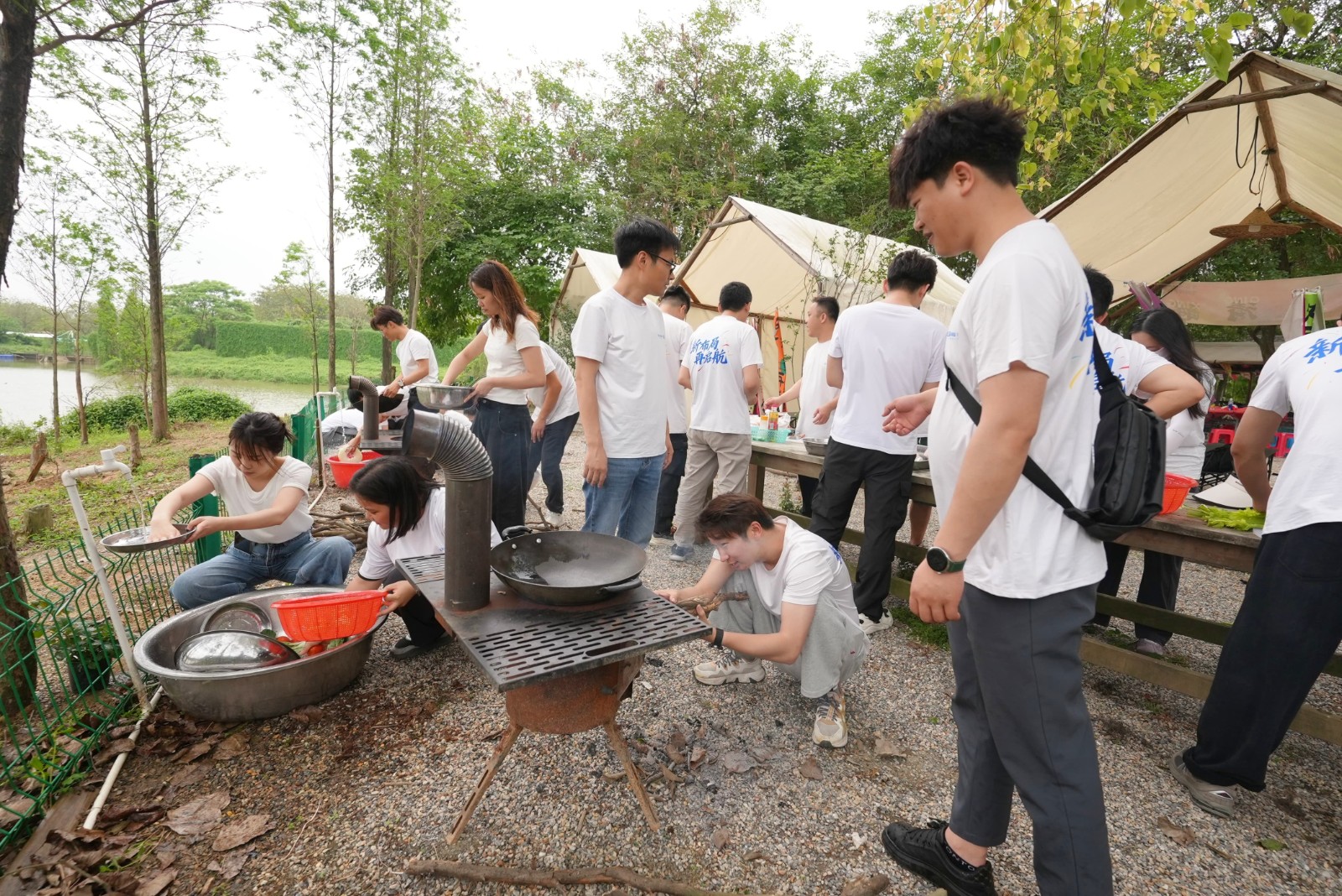 经过上午紧张的比拼后,各小组转战野炊区,厨神争霸赛火热开启。洗菜切配、生火掌勺,平日里独当一面的业务骨干纷纷化身厨艺高手。